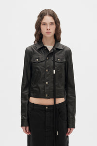 Ilmi Blouson - أسود - جلد ساتان هيكلي - ياقة - إغلاق بأزرار - جيوب صدرية بغطاء أزرار - جيوب جانبية - أساور بأزرار ضغط - حافة قصيرة - مقاس صندوقي عادي - 100% جلد حمل - صنع في إيطاليا