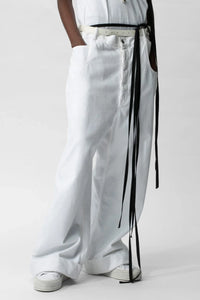 بنطلون كريستل الأبيض للنساء بخمسة جيوب وراحة عالية-دنيم أبيض-مقاس كبير-تفاصيل إغلاق بأربطة سوداء-100% قطن-صنع في إيطاليا