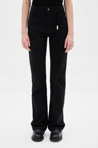 بنطلون أونا 5 جيب بقصة واسعة - أسود - فتحات حزام - شريط جروسجرين مميز قابل للإزالة - إغلاق بزر وسحاب - 5 جيوب - ساق واسعة - مقاس نحيف - 100% قطن - صنع في إيطاليا