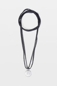 قلادة بندول بمونوغرام - فضي عتيق/أسود - 100% نحاس - شريط دانتيل - صنع في إيطاليا