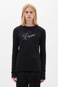 تي شيرت جريج بقصة ضيقة بأكمام طويلة - أسود - 100٪ قطن - تصميم طباعة "أحلام" - نسيج مضلع - ياقة دائرية - قصة ضيقة - صنع في البرتغال