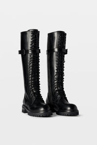 Herren Alec Stiefel in Schwarz - Schwarze Schnürsenkel - Runde Kappe - Schnallendetail - Seitlicher Reißverschluss - Tuxon-Leder - Absatz: 3 cm - 100% Rindsleder - Made in Italy.