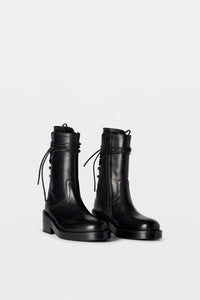 Damen Henrica Stiefeletten - Schwarz - Seitlicher Reißverschluss - Schwarze Schnürsenkel-Details - Runde Zehenpartie - 100% Kalbsleder - Made In Italy.