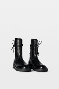 Damen Louise Stiefel - Schwarz - Seitlicher Reißverschluss - Schwarze Schnürsenkel - Runde Zehenpartie - 100% Kalbsleder - Made In Italy.