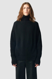 Herren Geirnart High-Neck Oversize-Pullover aus Woll-Kaschmir-Strick - Schwarz - Woll-Kaschmir-Strick - Rollkragen - Überschnittene Schultern - Gerippter Saum und Bündchen - Oversized-Passform - 90% Schurwolle - 10% Kaschmir - Made in Italy