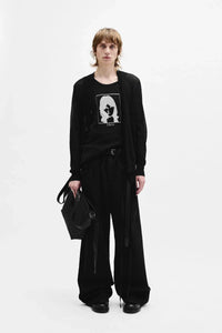 Abram Gedrehte Strickjacke - Schwarz - Ultraleichtes Crêpe-Strick - V-Ausschnitt - Asymmetrischer Knopfverschluss - Gerippter Saum und Bündchen - 100% Wolle - Made in Italy