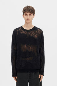Kamillo Oversize Pullover - Schwarz - Gebürstetes Woll-Seiden-Jacquard-Strick - Rundhalsausschnitt - Überschnittene Schultern - Gerippter Saum und Bündchen - Oversize-Passform - 70% Mohair-Wolle, 30% Seide - Made in Italy