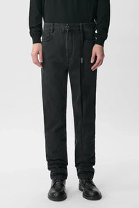 Gill 5 Taschen Standardhosen - Grau - Gewaschener Denim - Gürtelschlaufen - Abnehmbarer Signature-Grosgrain-Riemen - Knopfverschluss - 5 Taschen - Reguläre Passform - Made in Italy - 100% Baumwolle.