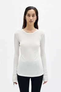 Fiene Langarm-T-Shirt - Naturweiß - Viskose-Baumwollripp-Jersey - Rundhalsausschnitt - Lange Ärmel - Locker sitzende Bündchen - Schmale Passform - 75% Viskose, 15% Baumwolle, 15% Polyamid - Made in Italy