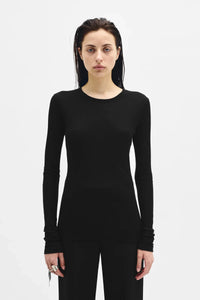 Fiene Langarm-Shirt - Schwarz - Viskose-Baumwoll-Rippenjersey - Rundhals - Lange Ärmel - Schlauchbündchen - Schlanke Passform - 75% Viskose, 15% Baumwolle, 15% Polyamid - Made in Italy