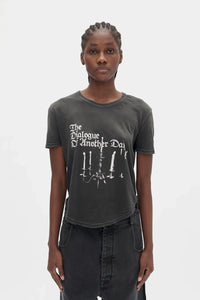 Floor Micro T-Shirt With "Chandelier" Print - Faded Black - Vintage Jersey - Distressed Details -Round Neck - Front ''The Dialogue Of Another Day'' Graphic Print - 100% Cotton - Made in Portugal