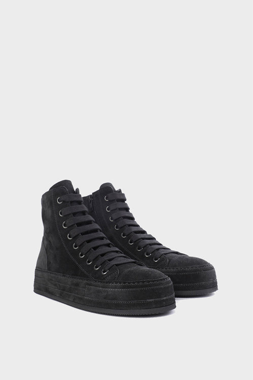 Orvo High-Top Sneakers - Black - Worn-Effect - Lace Closure - Covered Rubber Sole And Toe Cap - 100% Calfskin - Made in Italy