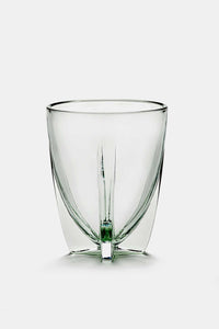 Dora is a strong and sculptural glass collection. The pure, rounded shape of the glass rests on a solid cross-shaped base. The veins of that cross disappear upwards into the glass where they merge into one