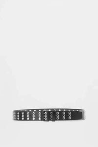 Ezra Eyelet Belt - Black - Metal Eyelets - Adjustable Netal Triple Prong Buckle - 100% Calf Leather - Made in Italy