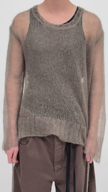 Kent High-Comfort Sweater - Sage - Extra Fine Sheer Mohair Knit - Open Crewneck -Ribbed Hem And Cuffs - 67% Mohair 30% Polyamide 3% Wool - Made in Italy