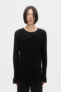 Leo Layered Serafino Top - Black - layered Boat Neck - Half-Button Closure - Dropped Shoulders - Long Sleeves - Buttoned Cuffs - Curved Hem - Slim Fit - 100% Cotton - Made in Italy