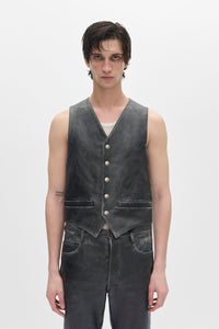 Albien Classic Waistcoat - Black - V-Neck - Button Closure - Sleeveless - Back Snap Tab Detail - Front Welt Pockets - Regular Fit - 100% Calf Leather - Made in Italy