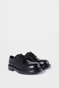 Agaton Derby Shoes - Black - Semi-Gloss Leather - Back Signature Rivet - Lace Closure -Leather Sole -Block Heel -100% Calf Leather - Made in Italy