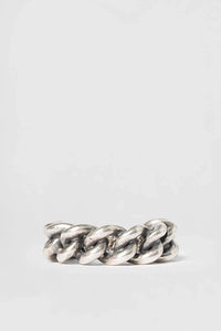 Antique Silver Gitt Ring - Wide And Thin Link Chains - Engraved Logo - 925 Sterling Silver - Made In Italy.