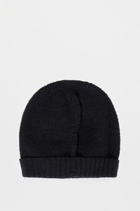 Edon Destroyed Seed Stitch Beanie - Black - Ribbed Brim - 100% Wool - Made in Italy
