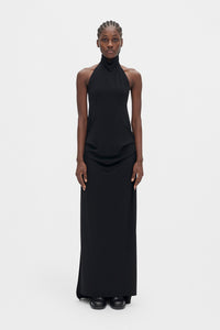 Rut Sleeveless Turtleneck Maxi Dress - Black - Crêpe Viscose Jersey - Turtleneck - Gathered Waist - Sleeveless - Side Splits - Open Back - Back Buckled Strap - Raw-Edge Hem -92% Viscose, 8% Elastane - Made in Italy