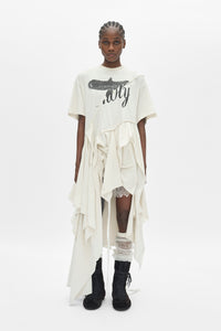 Guusta Long Deconstructed Dress - White - Cotton Blend - Short Sleeve - Front Graphic Print - Asymmetrical Draped Panels - Distressed Detailing - Side Slits - Knee-Length at the front, Longer at the back - 100% Cotton - Made in Italy