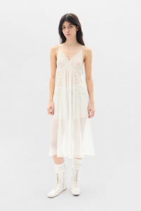 Elen Negligé Midi Dress - Natural White - 100% Silk - Lace Detail - Spaghetti Straps - Midi Length - Made in Italy