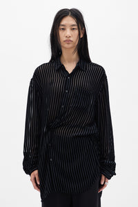 Black - Dévoré striped velve - Classic collar - Dropped Shoulders - Asymmetrical Button Closure - Chest pocket - 75% Viscose 25% Silk - Made in Italy
