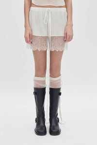 Vere Micro Boxer With Lace – White – Elastic Waistband - Styled as underwear or layering piece- 100% Silk – Made in Italy