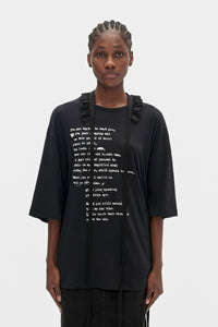 Agapi Printed High Comfort T-Shirt with Detachable Collar - Black - Cotton Jersey - Round Neck - Removable Ruffled Collar - Front ''Script' Print - Dropped Shoulders - Loose Fit - 100% Cotton - Made in Portugal