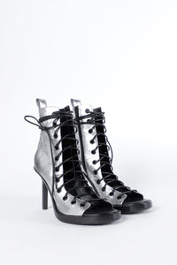 Hilla Chunky Pointed Heeled Ankle Boots - Silver - 100% Calf Leahter - Made in Italy
