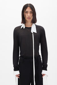 Jonathan Raw Edge Cut Collar Shirt - Black and Natural White - 100% Cotton - Contrasting Raw Edge Collar Detail - Long Sleeves - Made in Italy