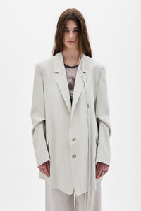 Agnes High Comfort Tailored Blazer - Pearl - Viscose Calico - Notched Collar - Padded Shoulders - Removable Signature Grosgrain Ribbon - Button Closure - Chest Pocket - Side Flap Pockets - Dropped Shoulders - Buttoned Cuffs - Back Split - Oversized Fit - 100% Viscose - Made in Italy
