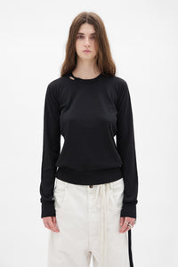 Nemi Crew Neck Sweater - Black - Twisted Neckline Detail - 50% Cotton, 30% Cashmere, 20% Silk - Made in Italy