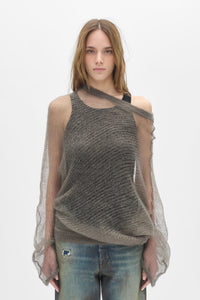 Dolfine Bias Cut Dropped Shoulder Sweater - Sage - Relaxed Fit - Ribbed Collar, Cuffs and Hem - Lightweight Texture - 100% Mohair - Made in Italy