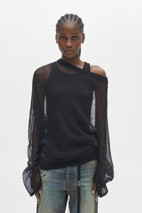 Dolfine Bias Cut Dropped Shoulder Sweater - Black - Relaxed Fit - Ribbed Collar, Cuffs and Hem - Lightweight Texture - 100% Mohair - Made in Italy