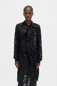 Rada High Comfort Dèvorè Shirt - black - Velvet Devoré - Classic Collar - Button Closure - Adjustable Drawstring Waist - Dropped Shoulders - Long Sleeves - Buttoned Cuffs - Elongated Hem - Relaxed Fit - 80% Viscose, 20% Silk - Made in Italy