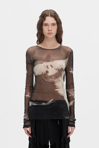 Fiene ''Doves'' Print Long Sleeve T-Shirt - black - ''Doves'' Print - Sheer Tulle - Round Neck - Dropped Shoulders - Long Sleeves - Slim Fit - 100% Polyammide - Made in Portugal