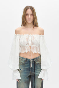 Jorunn Crop Top With Distressed Lace Details – Natural White – Cropped silhouette - 100% Cotton – Made in Italy