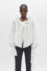 Stee Ruffled Top – White – Lightweight cotton poplin construction -Voluminous silhouette with ruffled detailing- 100% Cotton – Made in Italy
