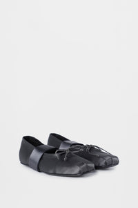 Paloma Ballerinas - Black - Leather Trim - Square Toe - Ruched Front - Front Rope Bow -Self-Tie Satin Ribbons - Leather Sole - 72% Viscose, 28% Silk - Made in Italy