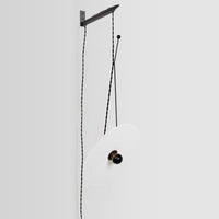 The ingenious suspension system ensures that the light source can be turned towards any side. That light source is an E27 mirror lamp that was designed in black to create the most beautiful reflection on the surrounding porcelain circle.