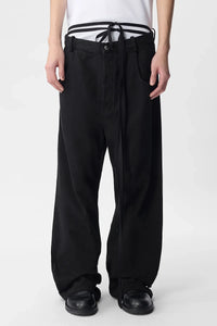 Olan 5 Pocket High-Comfort Jeans - Black - Button Closure - Belt Holes - Signature -Removable Grosgrain Strap - 5 Pockets - Baggy Fit - 100% Cotton - Made in Italy