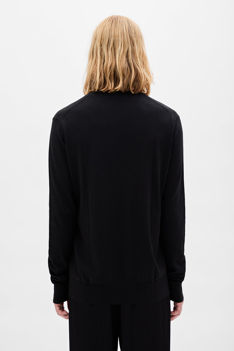 Magnar Crew Neck Sweater - Black - Twisted Neckline Detail - 50% Cotton, 30% Cashmere, 20% Silk - Made in Italy