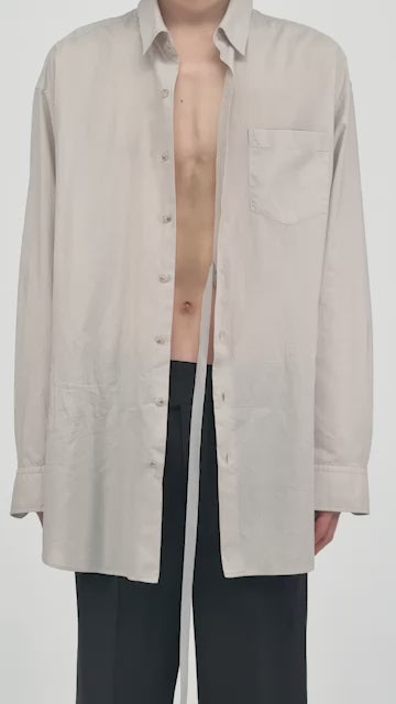 Mark High Comfort Pocket Shirt - Pearl - Classic Collar - Asymmetric Button Closure -Chest Pocket - Long Sleeves - Buttoned Cuffs - Curved Hem - Elongated Fit - Twisted Silhouette - 100% Cotton - Made in Italy
