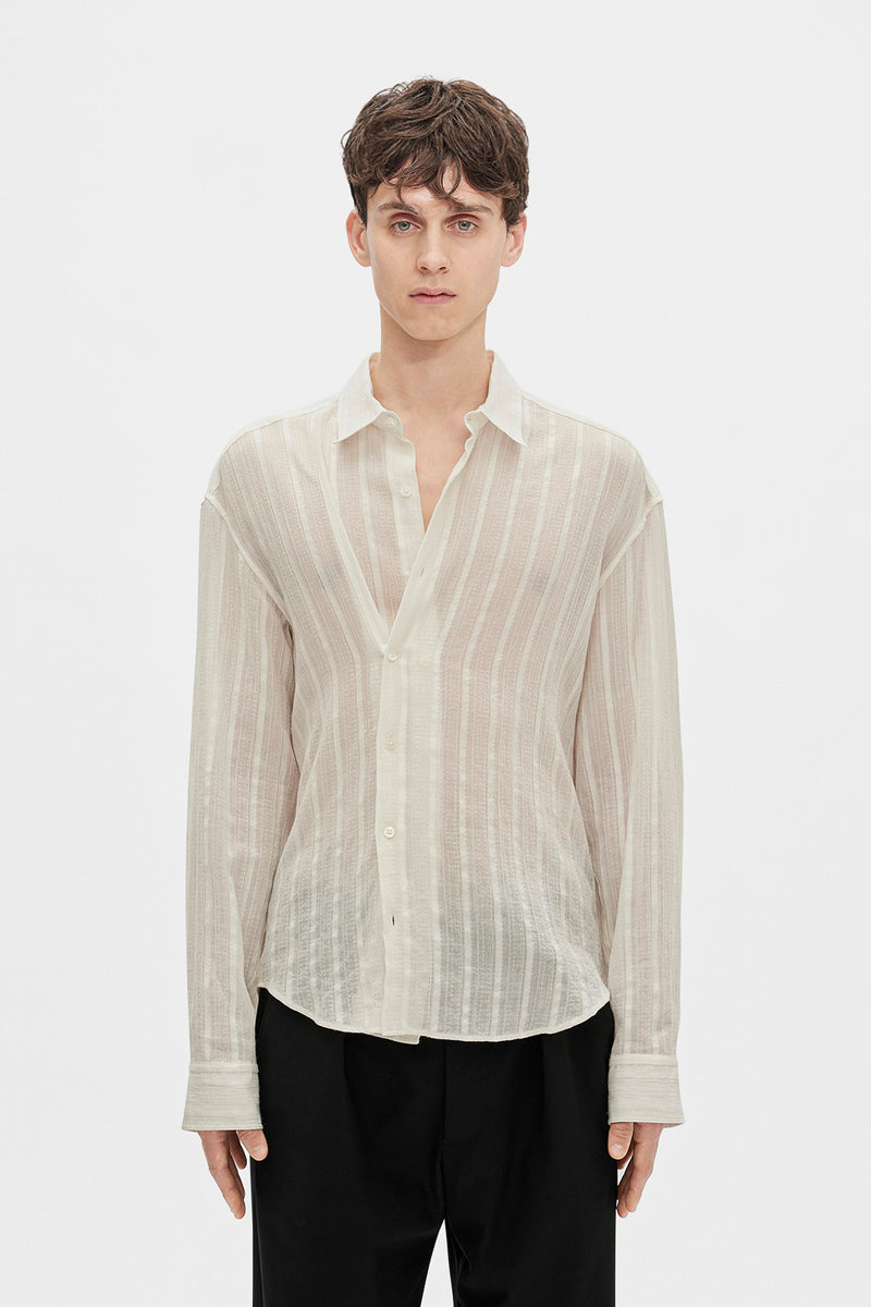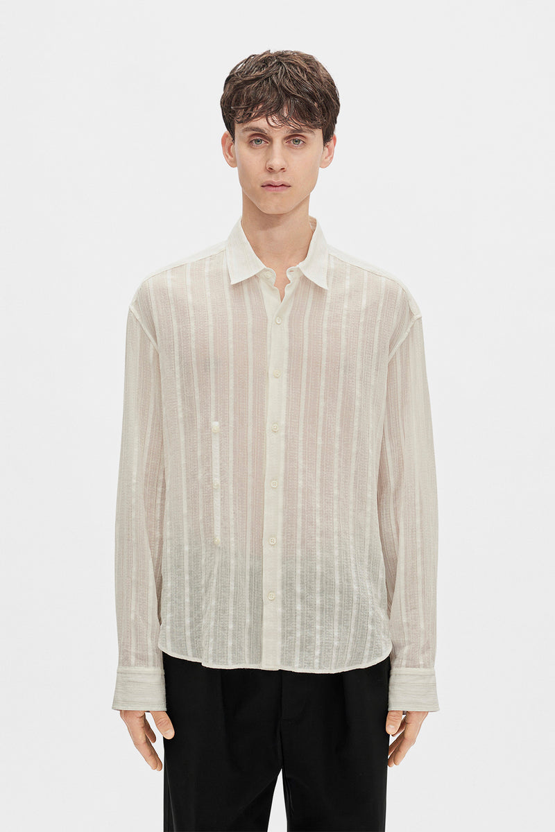 Chemise à Rayures Dobby Légères Isak Twisted - Blanc Naturel - Rayures Dobby Légères Semi-Transparentes - Col Classique - Fermeture à Boutons - Fermeture à Boutons Supplémentaire - Ourlet Arrondi - Coupe Régulière - Peut être Portée avec une Coupe Torsadée avec Patte de Boutonnage Supplémentaire - 50% Coton, 15% Laine, 5% Cupro - Made in Italy