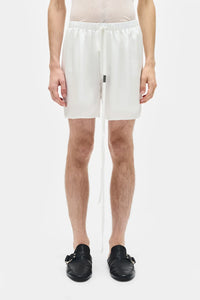 Boxer - Blanc - Satin léger lavé - Ceinture élastique avec cordons de serrage en gros-grain signature - Poches latérales - 100% Soie - Made in Italy