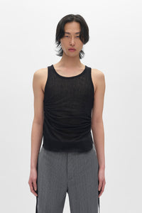 Boris Débardeur Court Froncé - Noir - Encolure Ras-du-Cou - Froncé - Côtés Rassemblés - Ourlet Court - 100% Coton - Made in Italy