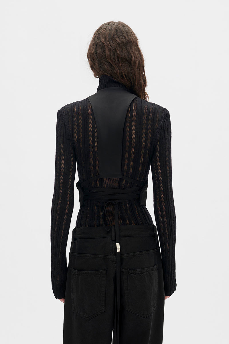 Pull Col Roulé Aamu - Noir - Coton Brossé Irrégulier Tricoté Côtelé - Col Roulé - Épaules Tombantes - Ourlet et Poignets Côtelés - Ajusté - 50% Coton, 30% Cachemire, 20% Soie - Made in Italy