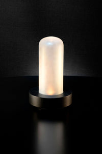 Ambience does not allow itself to be confined in space, and neither does this Lex ambientlight. No messing around with wires and sockets. Instead, it is rechargeable via the wooden base and easy to carry with you. The frosted sandblasted glass softens the light, while a dimmer ensures that this lamp emulates the magic of candlelight. It manages that for a long time, given that the Lex table lamp lasts up to eight hours. An important technical fact: both the LED lamp and the charger can be used in Europe and the United States. For the catering industry, a larger charger has been provided that can charge several lights simultaneously.